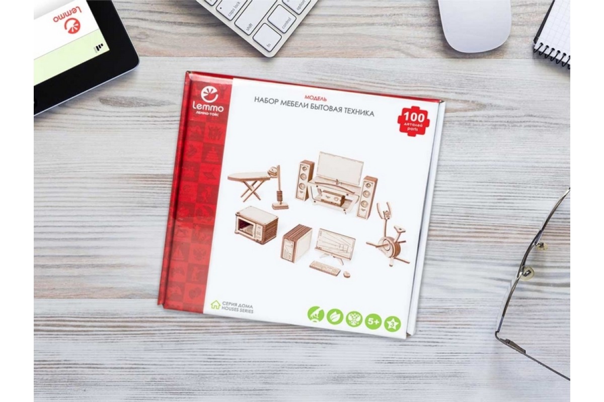 Деревянный конструктор Lemmo МОДЕЛЬ "НАБОР МЕБЕЛИ БЫТОВАЯ ТЕХНИКА", 100 деталей LM-0169 в Москве