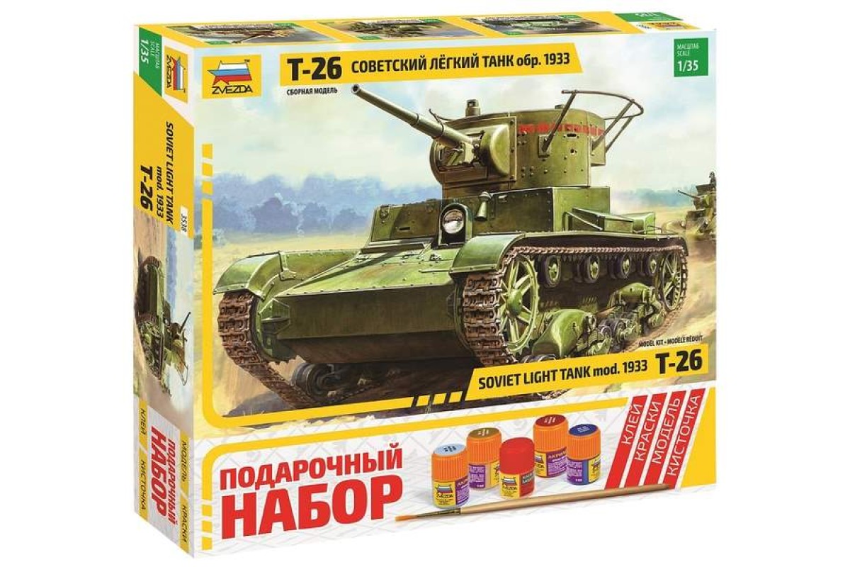 Сборная модель ZVEZDA Советский легкий танк Т-26 (обр. 1933 г.), подарочный набор, 1/35 ZV-3538П в Миассе