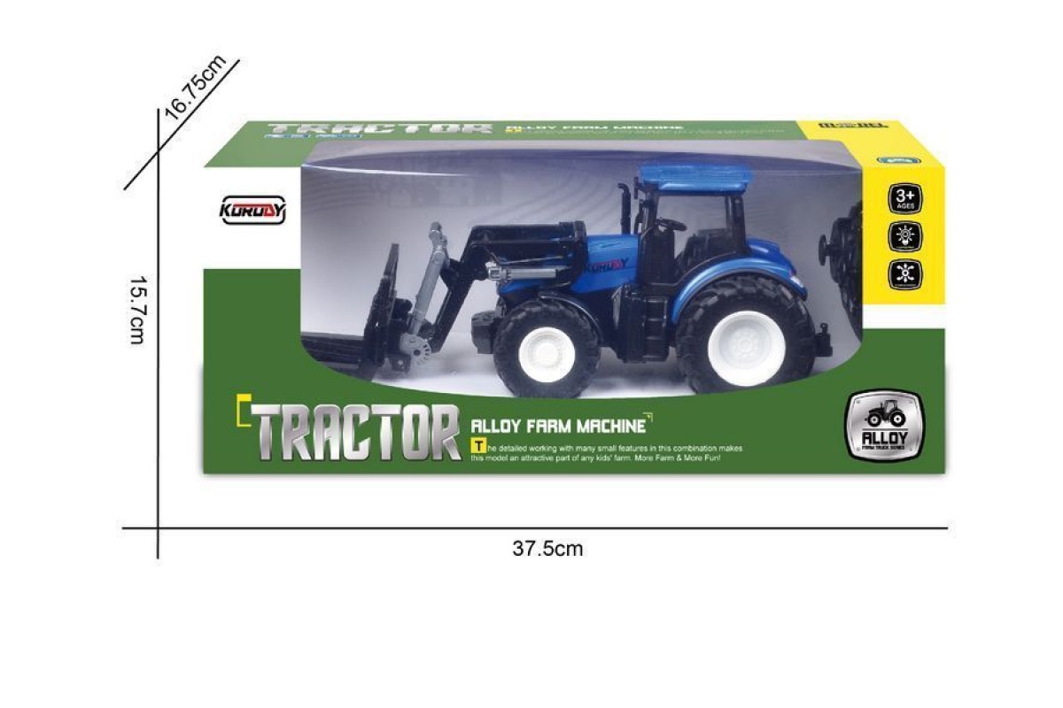 Трактор двигается вперед, назад, способен повернуть налево и направо, включить/выключить свет, а также включается демонстрационный режим. К тракторам Korody легко прицепляется навесное оборудование, чтобы показать детям, как возделываются поля и выращиваются сельскохозяйственные продукты. Трактор имеет в комплекте вилочный погрузчик.