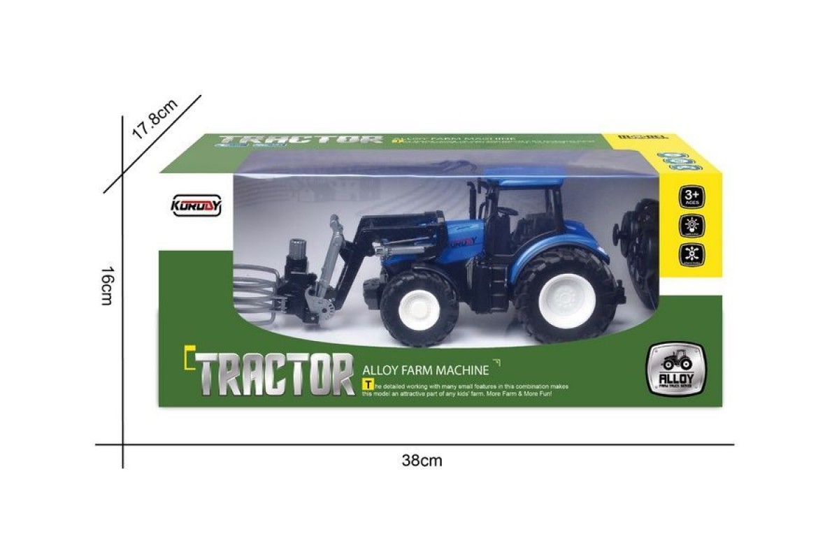 Трактор двигается вперед, назад, способен повернуть налево и направо, включить/выключить свет, а также включается демонстрационный режим. К тракторам Korody легко прицепляется навесное оборудование, чтобы показать детям, как возделываются поля и выращиваются сельскохозяйственные продукты. Трактор имеет в комплекте погрузчик тюков.