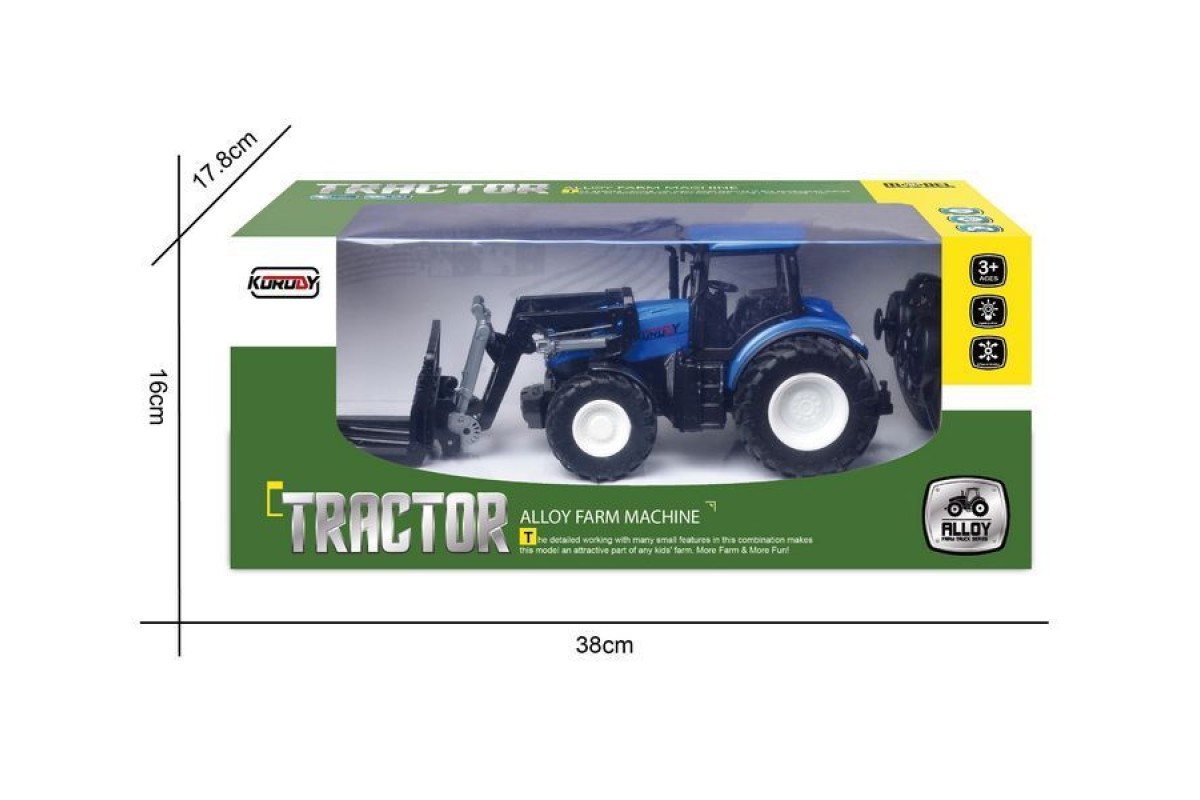 Трактор двигается вперед, назад, способен повернуть налево и направо, включить/выключить свет, а также включается демонстрационный режим. К тракторам Korody легко прицепляется навесное оборудование, чтобы показать детям, как возделываются поля и выращиваются сельскохозяйственные продукты. Трактор имеет в комплекте вилочный погрузчик.