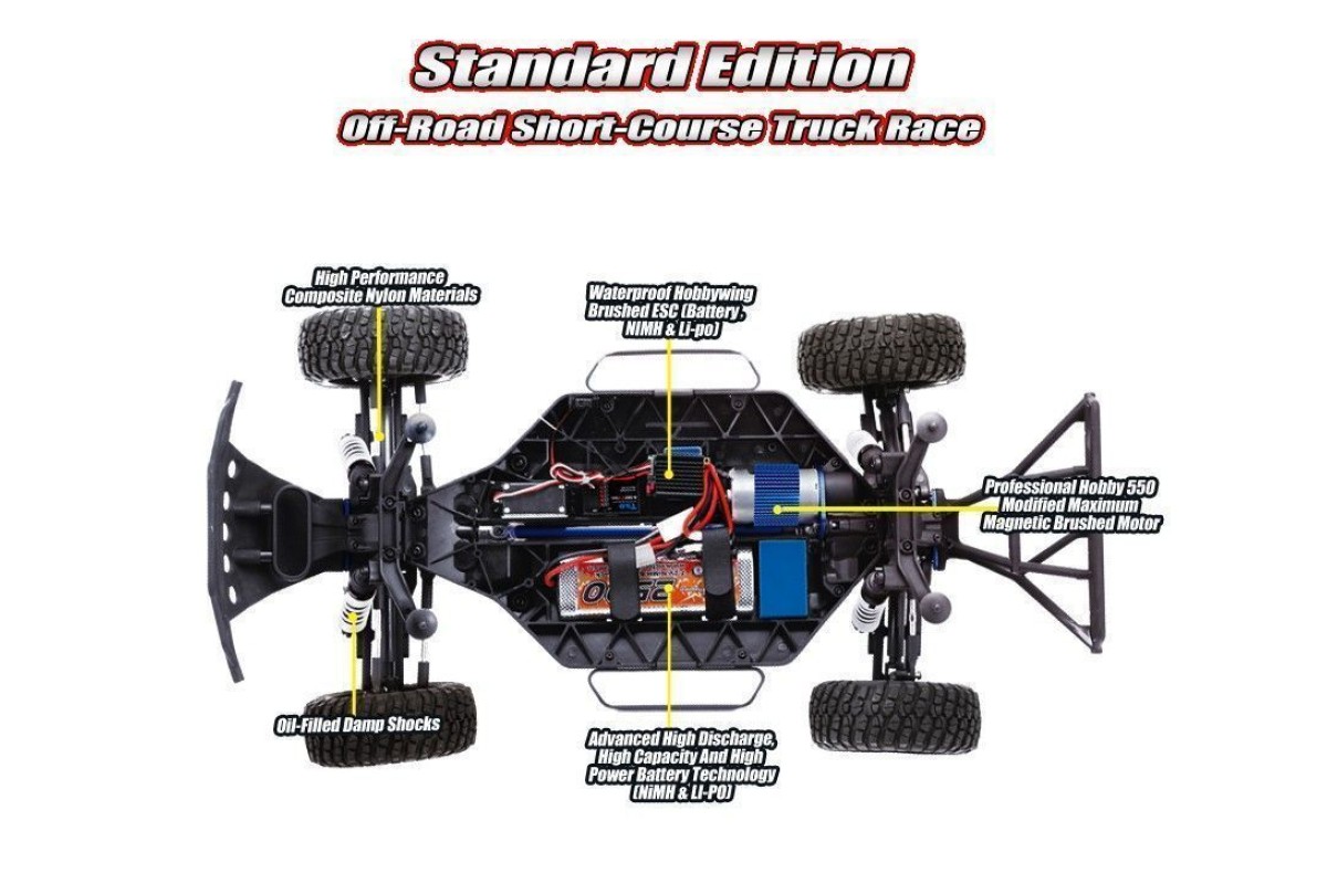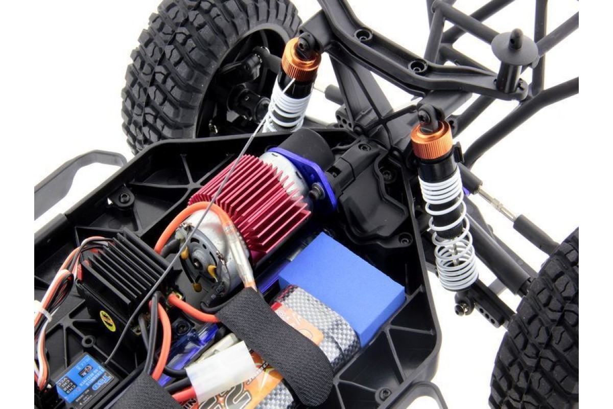 Полноприводный гоночный внедорожник 9EMU Racing выполнен в масштабе 1:10 и является точной копией реального гоночного автомобиля. Коллекторный двигатель, батареи, NiMH и Li-Po высокой мощности, водонепроницаемый усилитель руля (6KG / см), высокая износостойкость резины позволяют этой машине иметь огромные возможности. Автоматический передатчик работает на частоте 2,4 Ггц.